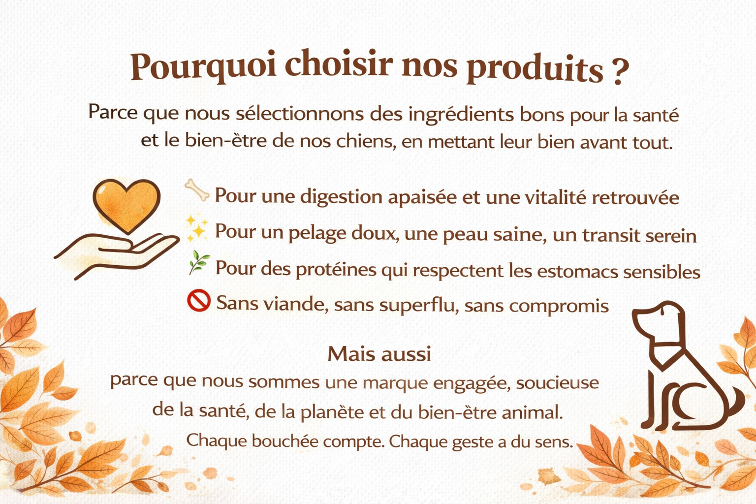 Offrez à votre chien des produits sains, délicieux et respectueux de l’environnement....